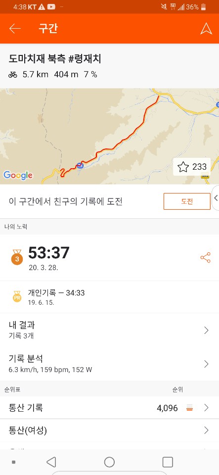 북악 오를 때도 그랬지만 다시 한번 초기화를 느끼고 왔네요. 그래도 그 사이 퇴근할 때 9Km 정도 꾸준히 걸었고 자전거도 주말에 꾸준히 탔으니 천천히라도 무정차 업힐이 가능하지 않을까 싶었는데 화악산은 2회, 도마치재는 1회 쉬고 올라갔습니다. ㅠ.ㅠ
