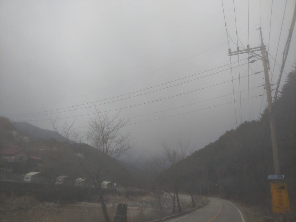 거의 같은 위치에서 촬영한 사진입니다. 민들레마트 도착 직전 위치로 3/15에는 바람도 심하고 눈발도 날리고 시즌 온한지 얼마 안 되었는데 화악산 올라갔다가는 정말 죽을지도 모르겠다는 생각이 들어 포기했었습니다. 밥집 가서 밥 먹고 있으니 해가 나던...